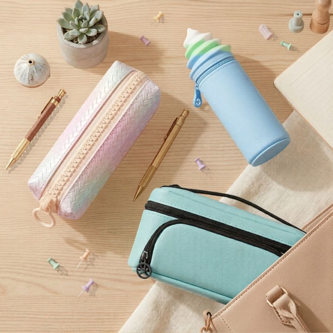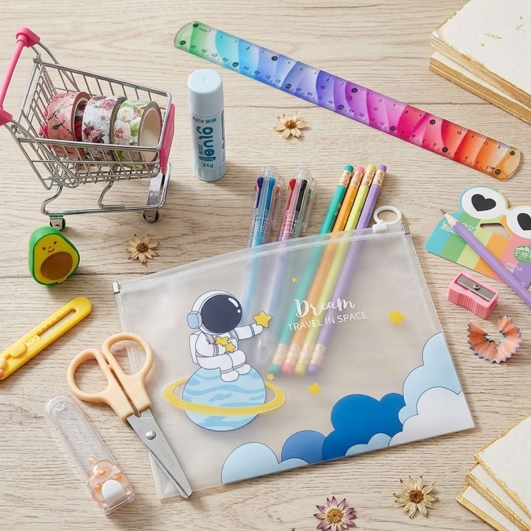 Transparent Mesh Pencil Pouch – Blue Aesthetic Zipper Stationery Bag for Students