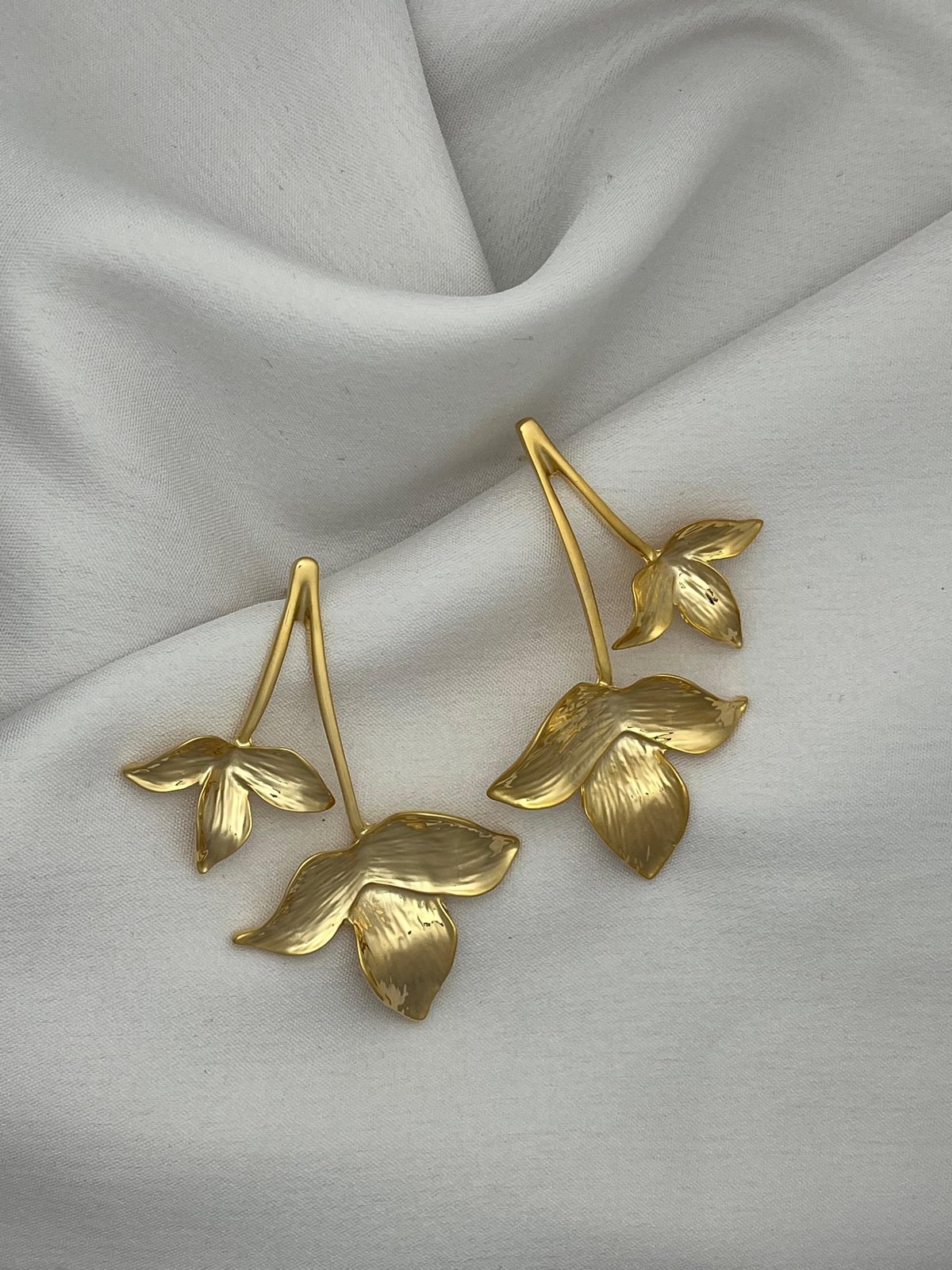With their radiant gold finish and fluid silhouette, the Bloom Dangle Earrings are a must-have for those who love nature-inspired statement jewelry.