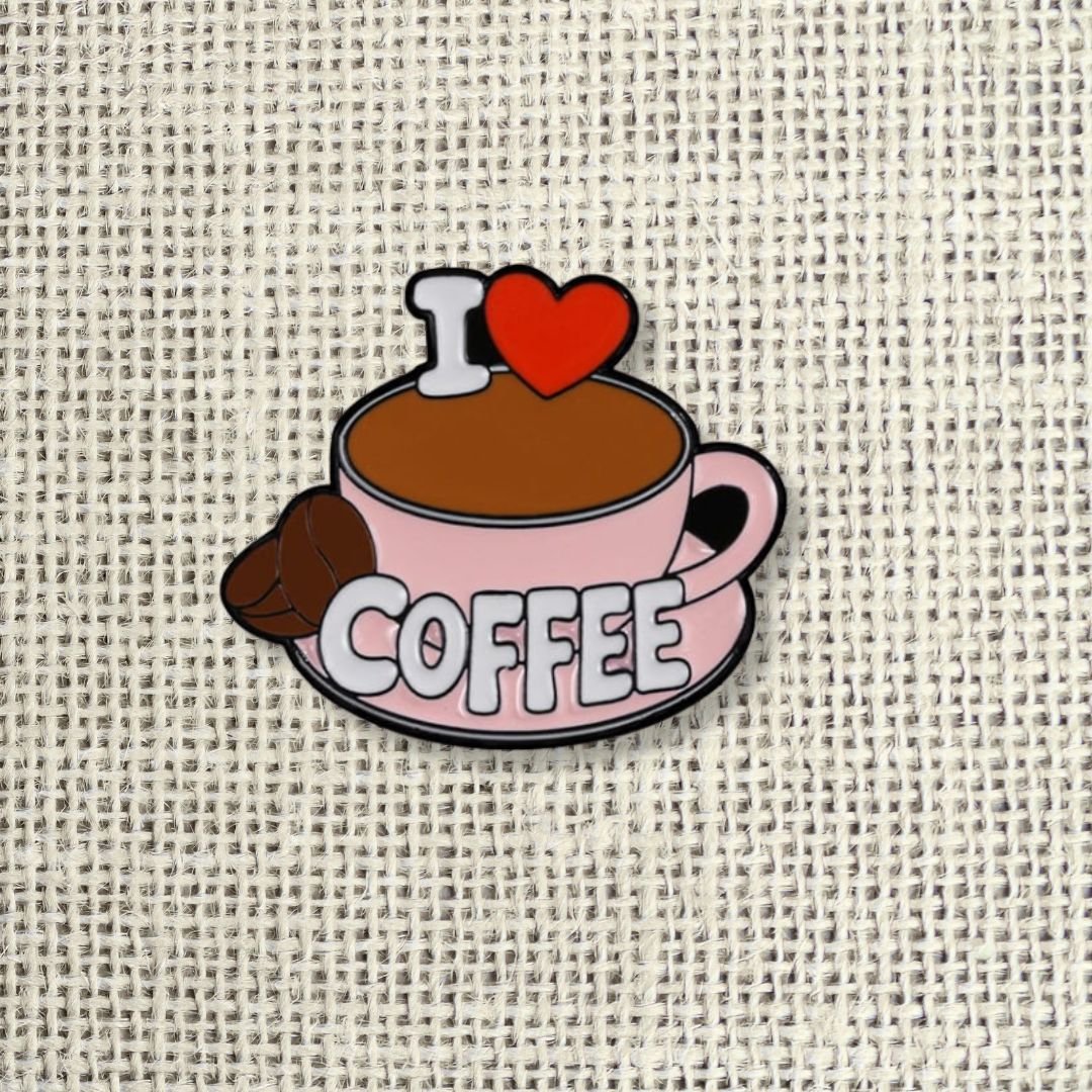 Show your love for coffee with this cute “I Love Coffee” enamel pin.