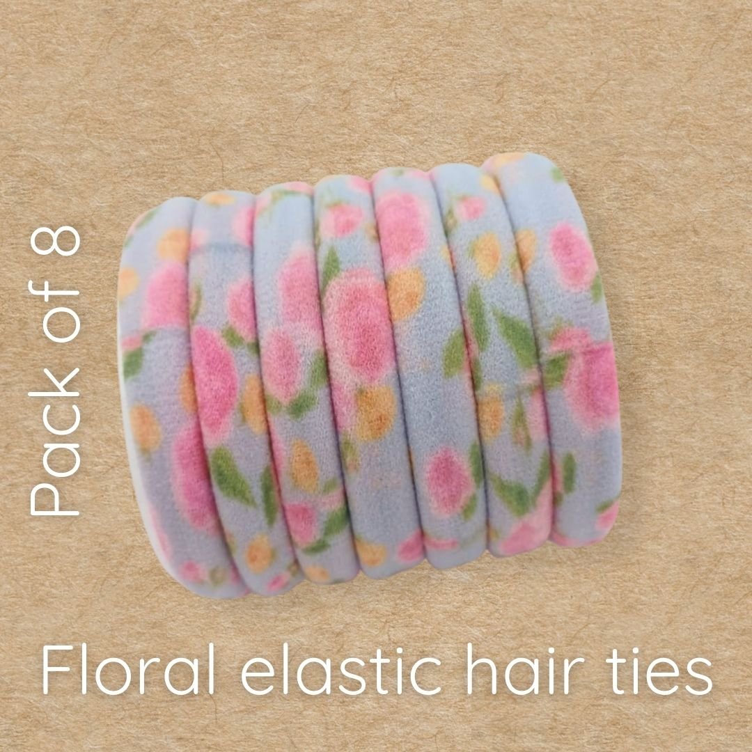 The Floral Elastic Hair Ties Pack of 7 works well for ponytails, buns, and half-up hairstyles; therefore, it supports effortless styling throughout the day.