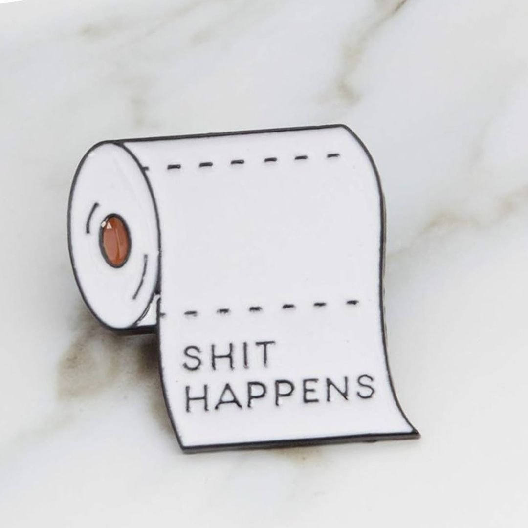 Funny “Shit Happens” Enamel Pin – Aesthetic Lapel Pin