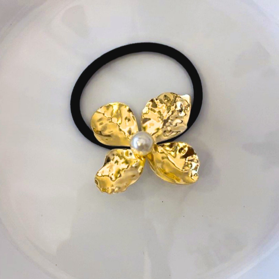 The Golden Blossom is a beautifully sculpted gold-tone hair tie designed to add elegance to any look. Featuring a five-petal flower design, it combines nature’s charm with a polished, modern aesthetic.
