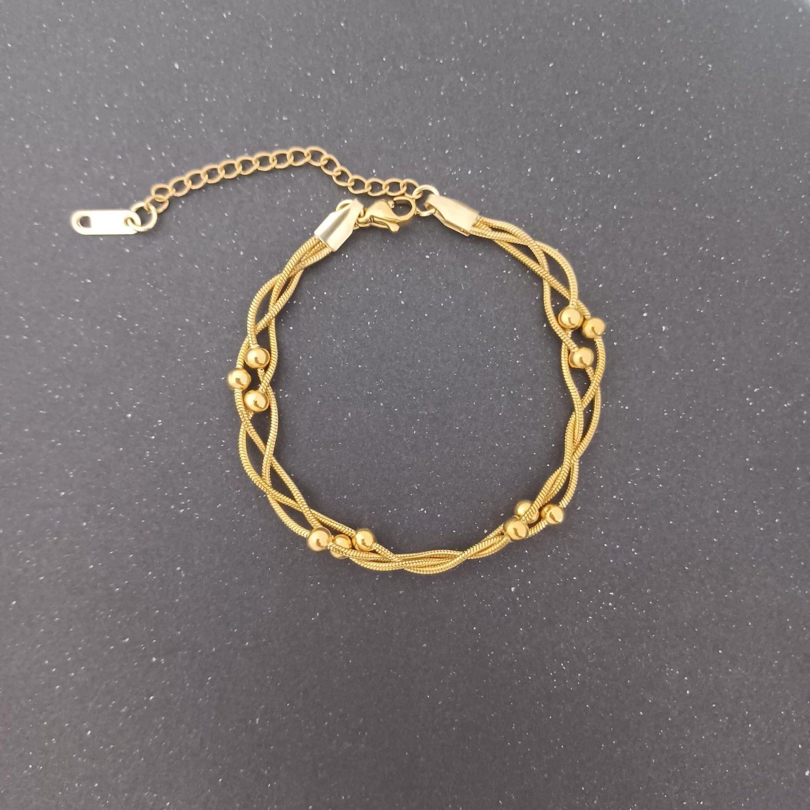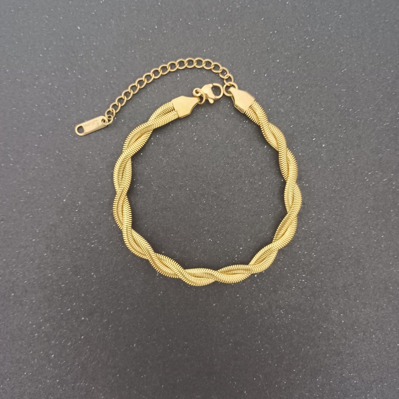 Perfect for any occasion, this bracelet transitions seamlessly from casual chic to evening glam. Wear it solo for a clean, elegant statement or layer it with your existing favorites for a bolder look. It pairs beautifully with our Luxe Fusion Bracelet Stack, adding a rich, golden texture that enhances any wrist stack.