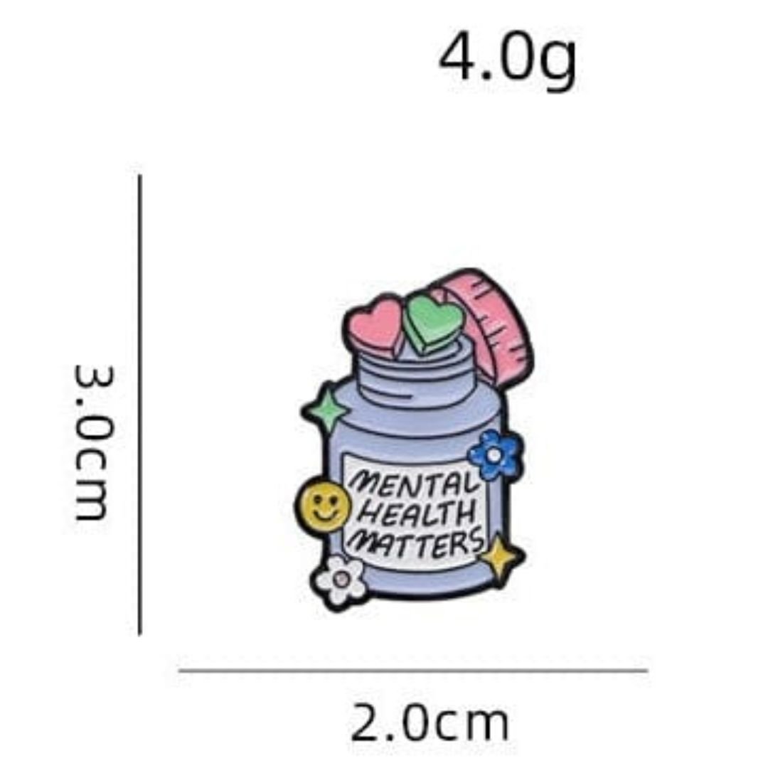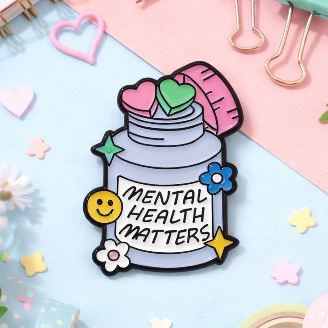 Mental Health Matters Enamel Lapel Pin – Cute Motivational Badge for Bags & Jackets (4×3 cm)