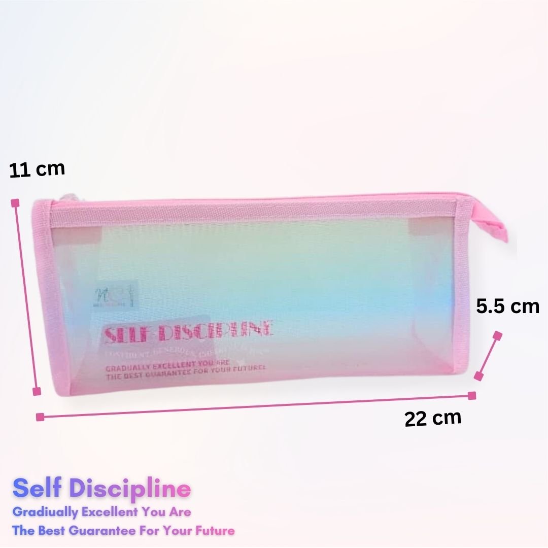 Organise your stationery in style with this Pink Mesh Pencil Pouch featuring a soft twilight tones finish. Made from durable mesh material, this pouch is lightweight, breathable, and ideal for everyday school, college, or office use. Its slim yet spacious design easily holds pens, pencils, and small essentials.